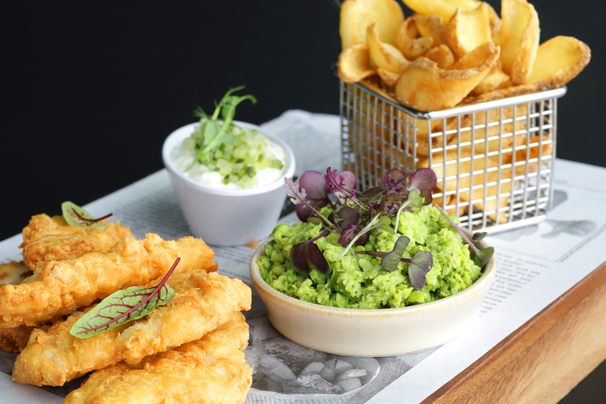 FISH & CHIPS Z MUSHY PEAS I SOSEM TATARSKIM