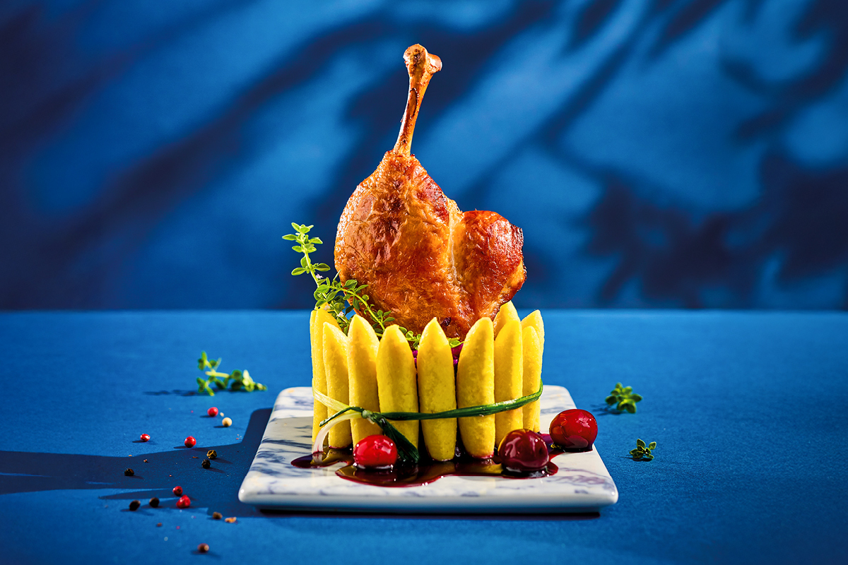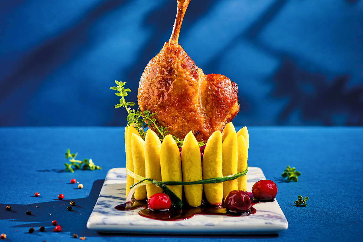 PIECZONA KACZKA Z ŻURAWINĄ, KOPYTKAMI I CZERWONĄ KAPUSTĄ