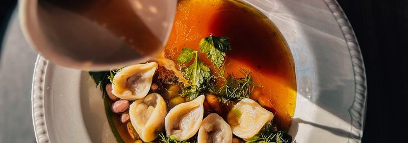 Zimą szczególnie ciągnie mnie do smaków, które łączą w sobie bogactwo produktów charakterystycznych dla naszej szerokości geograficznej oraz tradycję naturalnych metod konserwacji. Uwielbiam pracować na własnych piklach, kiszonkach i wędzonkach – to baza, która daje niezwykłą głębię i złożoność. Połączenie smaków fermentowanych, piklowanych i suszonych zawsze przywodzi mi na myśl starą polską kuchnię, kiedy ludzie musieli radzić sobie bez nowoczesnych technologii, a jedzenie przygotowywano w sposób naturalny i pełen szacunku do produktu. Zimą szczególnie bliska jest mi też słodycz polskich suszonych owoców – szczególnie śliwek i gruszek – która w zestawieniu z korzennymi przyprawami i dziczyzną tworzy aromaty, jakich trudno szukać o innej porze roku. Przykład? Choćby pierogi z ciasta gryczanego z karkówką z dzika, które mamy w karcie, podawane m.in. z piklowaną żurawiną. To danie, które idealnie oddaje to, czym dla mnie jest zimowy comfort food – rozgrzewające, pełne tradycji, głębokie w smaku i autentyczne.