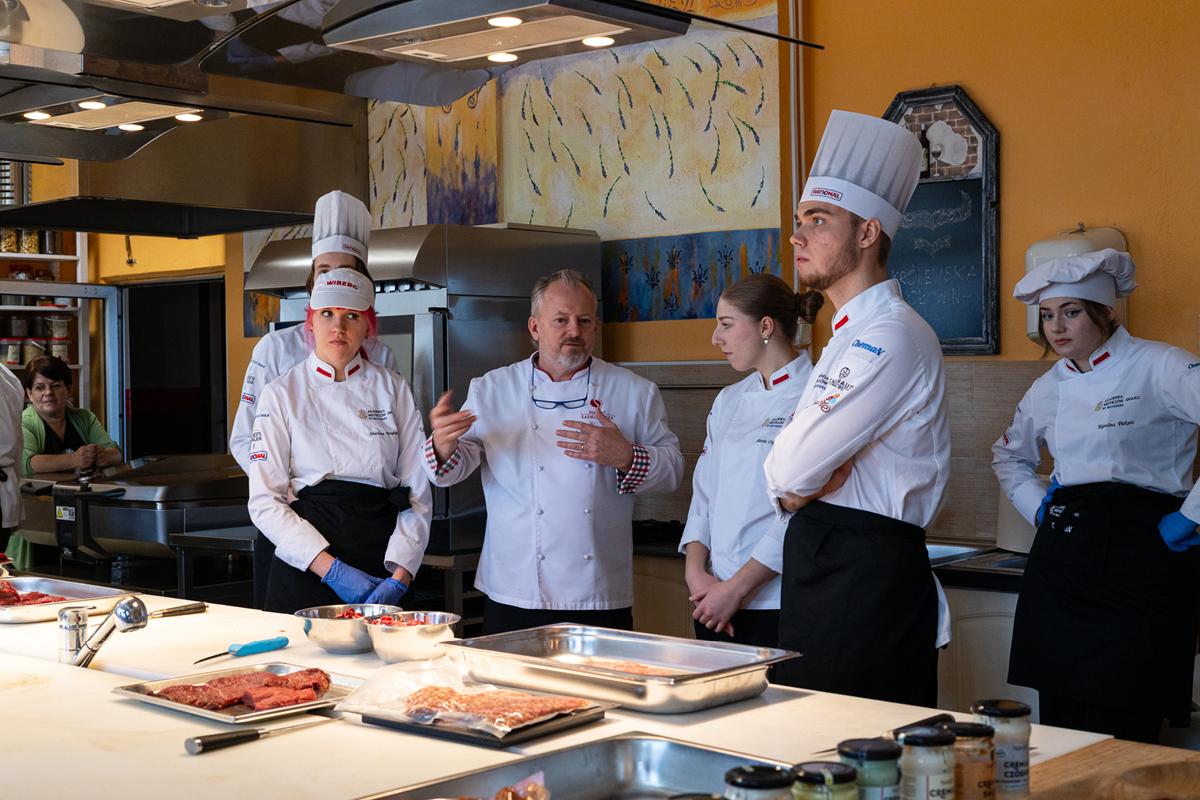 Uzupełnieniem zajęć był warsztat ekspercki „Od lasu do stołu – towaroznawstwo dziczyzny w pigułce”, zrealizowany wspólnie z partnerami warsztatu: Cremajo oraz Las-Kalisz. Uczestnicy zdobyli praktyczną wiedzę o pochodzeniu surowca, jego obróbce oraz odpowiedzialnym wykorzystaniu w kuchni.