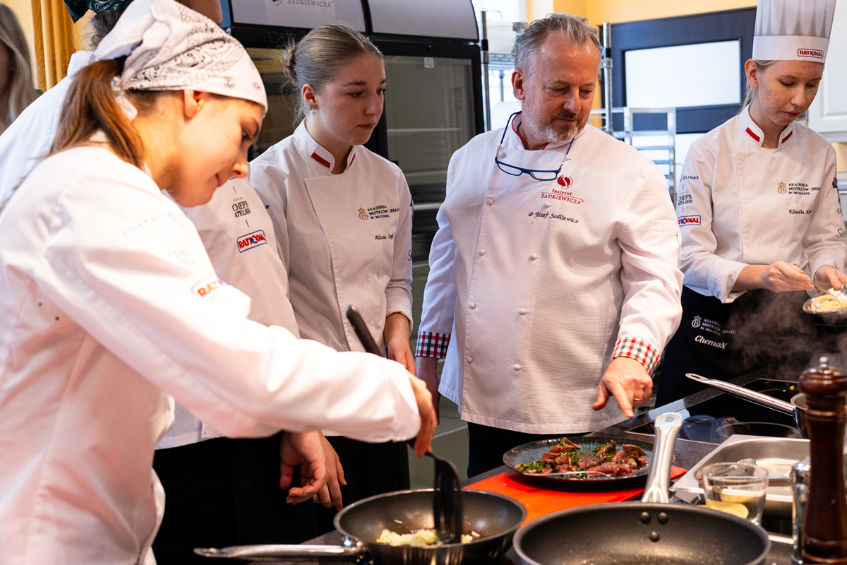 Warsztaty odbyły się w dniach 18-19 listopada w Instytucie Sadkiewicza. Część kulinarną poprowadził nie kto inny jak Józef Sadkiewicz – naukowiec, szef kuchni i ekspert łączący wiedzę z zakresu żywienia, technologii żywności i medycyny naturalnej. Studenci poznawali specyfikę kuchni myśliwskiej, znaczenie sezonowości oraz procesów technologicznych, które bezpośrednio wpływają na smak i jakość potraw.