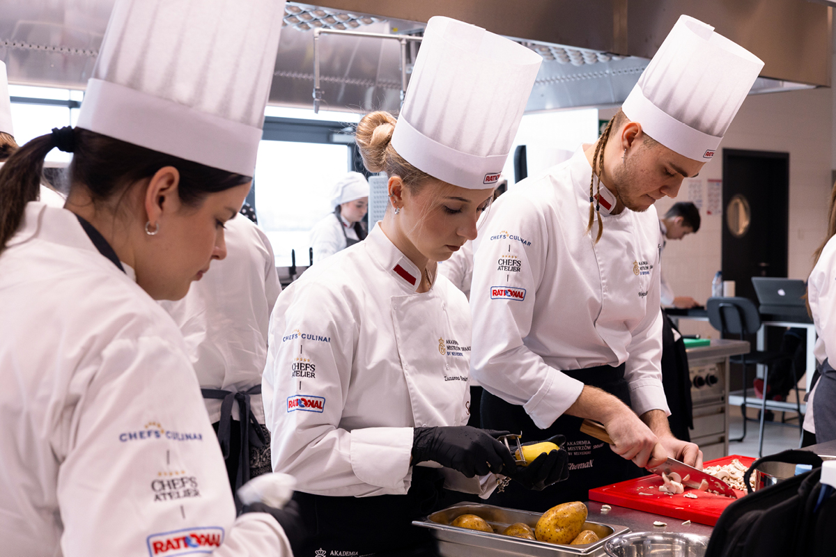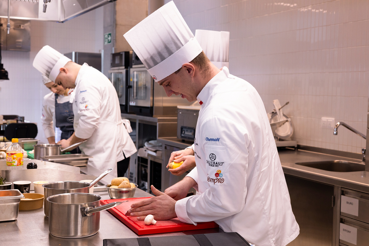 Uczniowie gotowali w pełnym skupieniu, a efekty końcowe robiły wrażenie – na talerzach pojawiły się dania wykonane na wysokim poziomie, wymagające i dopracowane. Z nową wiedzą i doświadczeniem są o krok bliżej do spełnienia marzeń o pracy w restauracji z gwiazdką!